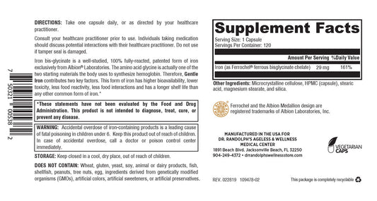 Gentle Iron travels unchanged through the stomach, into the intestine, where it is absorbed and released for transport throughout the body. It is less likely to have any gastrointestinal side effects associated with standard iron supplementation.