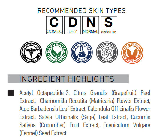 clears and preps the skin - Gently exfoliates, re-balances and neutralizes, improving tone and texture