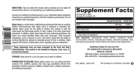 Alpha Lipoic provides whole-body, multifunctional antioxidant activity that helps to maintain healthy, well-functioning cells.