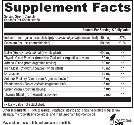 • Provides Essential Nutrient, Herbal, and Glandular Support for Production of Thyroid Hormones