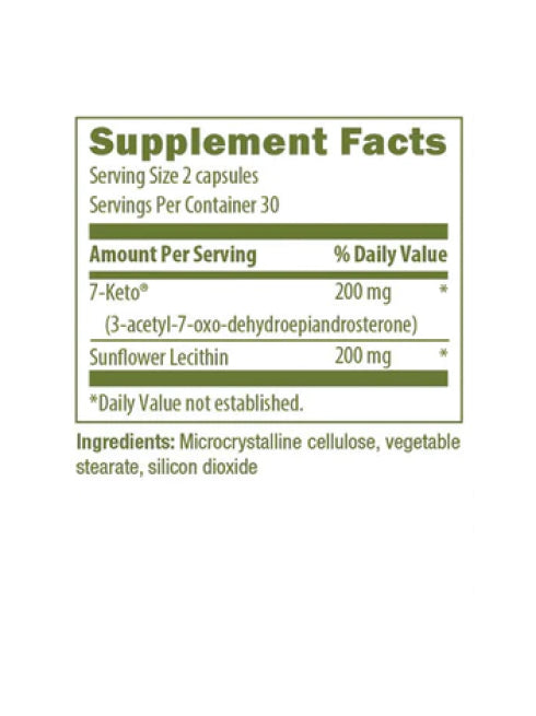 7-Keto DHEA is a natural hormone metabolite of DHEA that can restore hormonal balance through natural conversion to hormones as needed by the body; safely boosts immune function, slows rapid aging and helps to reduce body fat through thermogenesis.